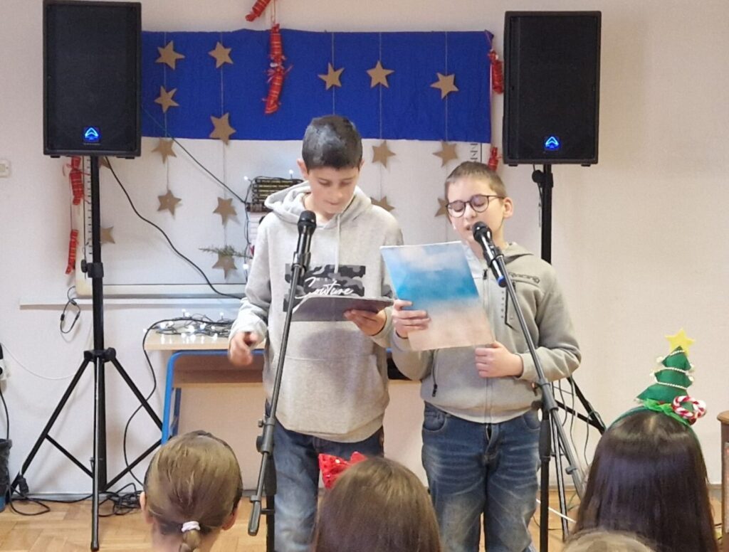 Program su otvorili učenici 3. a razreda recitacijom „U božićnoj noći“, nakon čega su se redali igrokazi, monolozi, recitacije i glazbene točke u izvedbi učenika od prvog do sedmog razreda. Posebno su se istaknuli igrokazi „Želja božićnog drvca“, „Božićna potraga za dobrotom“ i „Božićno pomirenje“, monolog “Moje božićne želje”, recitacije “Sveta noć” i “Božićna čestitka” kroz koje su učenici na dojmljiv način prenijeli poruke nesebičnosti, razumijevanja i praštanja.