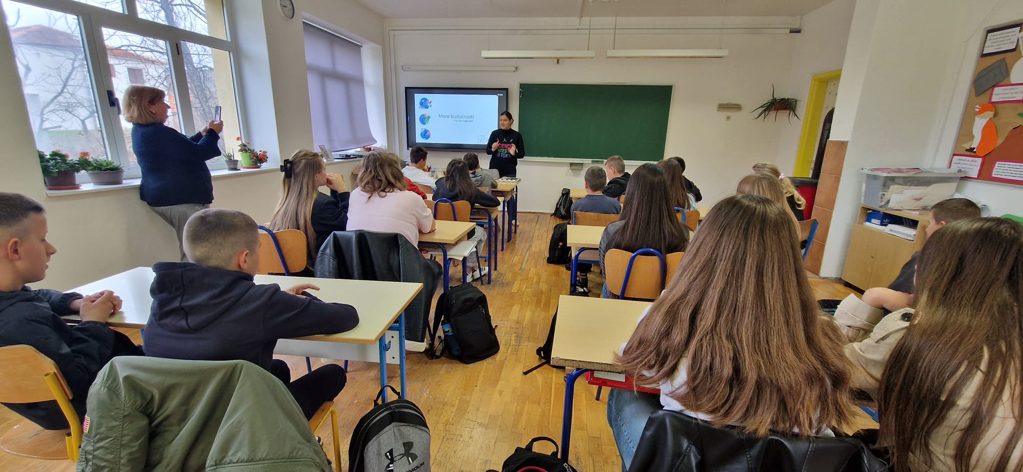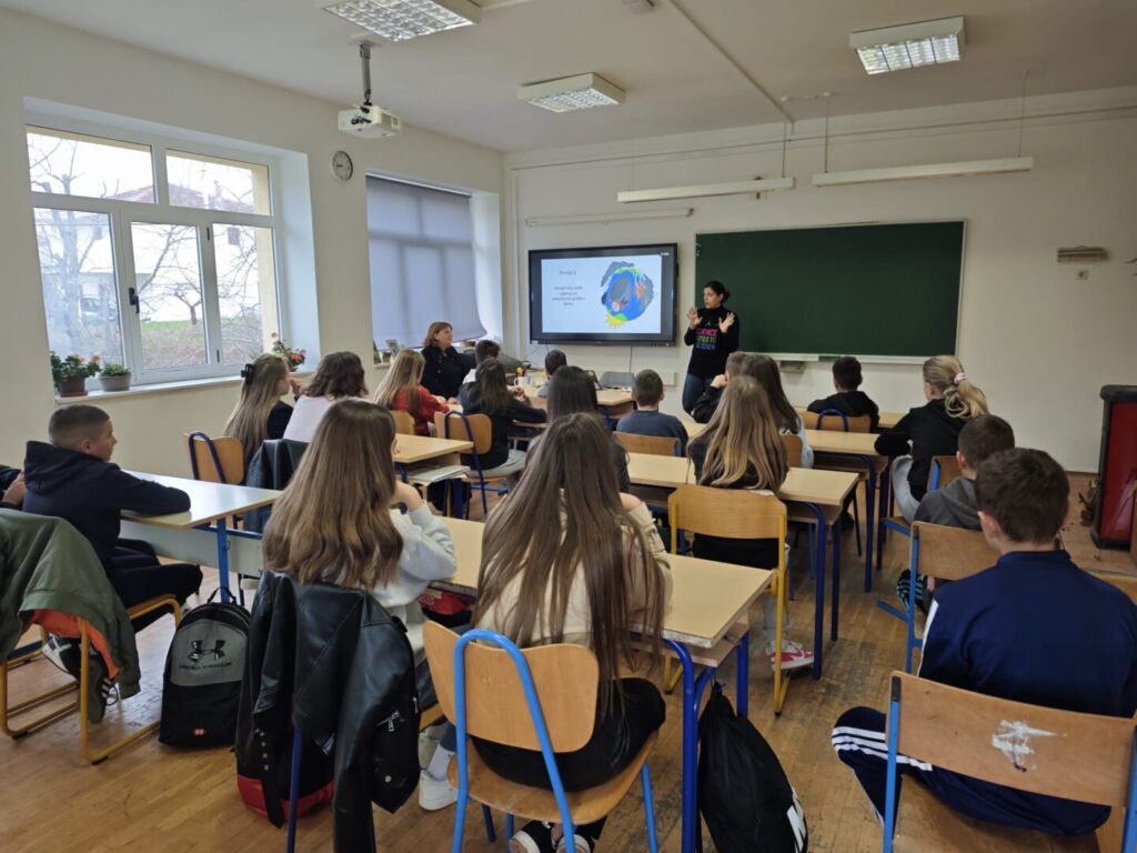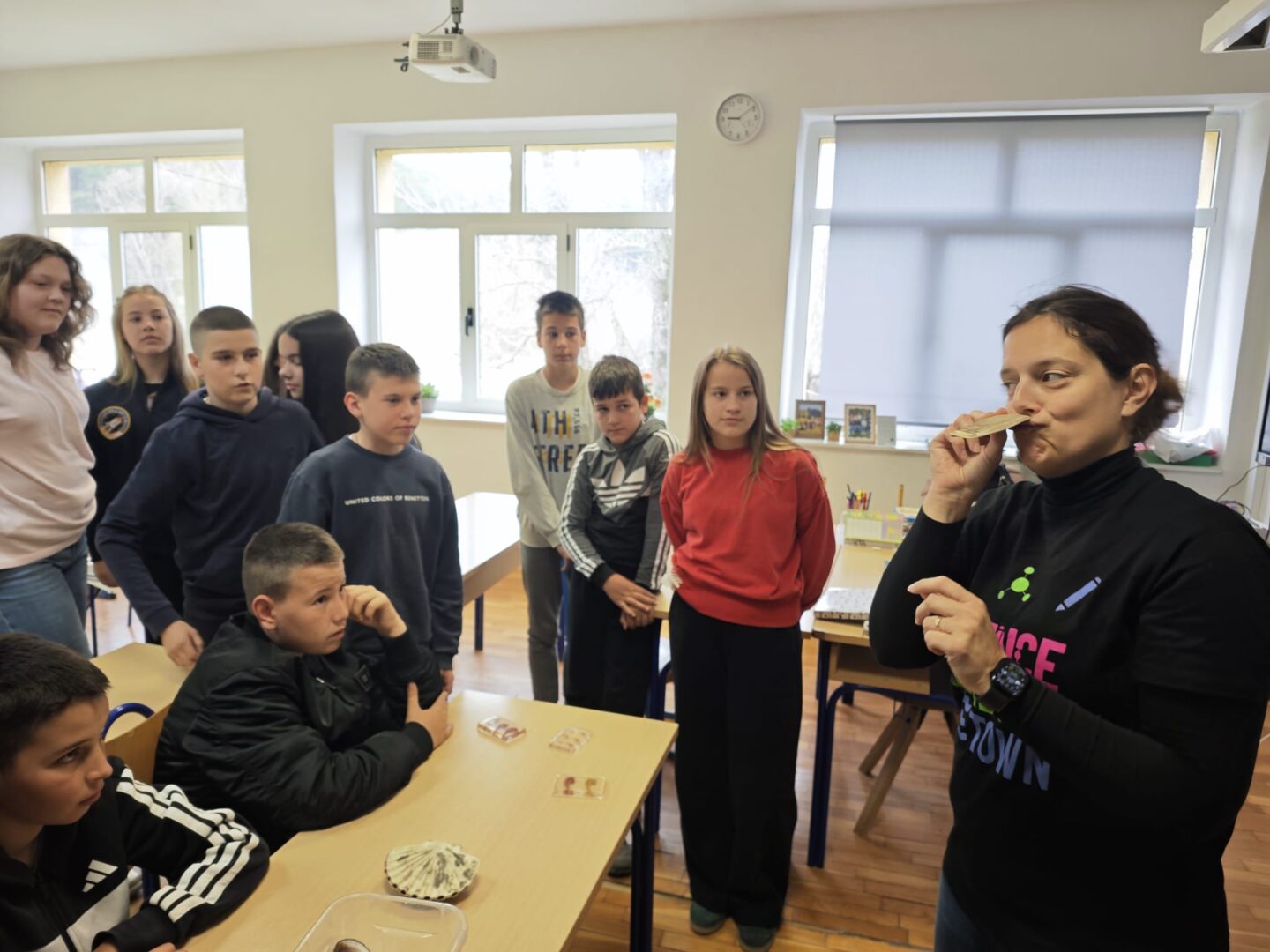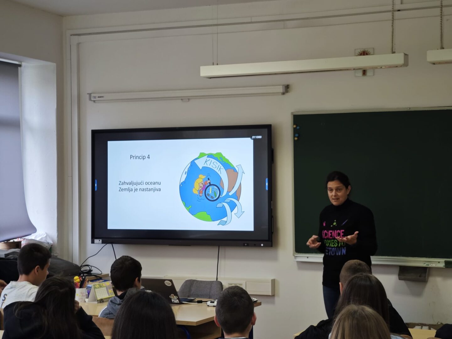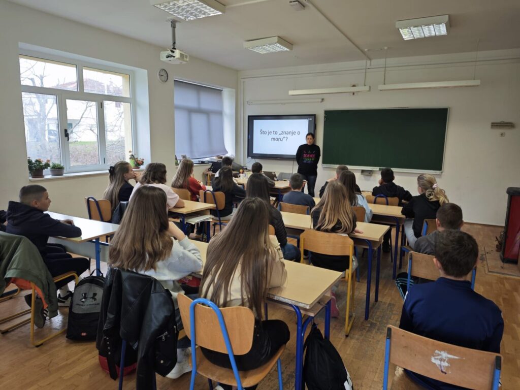 Učenici su najprije kroz kratko predavanje saznali brojne zanimljivosti o svijetu ispod površine mora – što se sve krije u jednoj kapljici morske vode, naučili su razlikovati kitove usane od kitova zubana, otkrili koji morski organizmi proizvode kisik te se upoznali s negativnim utjecajima na morski ekosustav, poput onečišćenja.