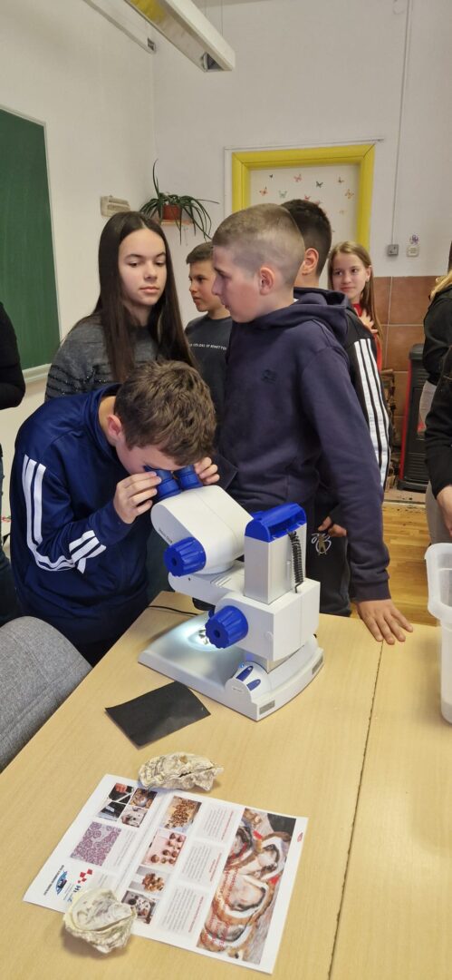 Nakon predavanja učenici su istraživali različite vrste školjkaša, učili o njihovoj starosti i načinima njezina određivanja. Također su promatrali plankton pod mikroskopom i saznali više o njegovoj važnosti za život u moru.